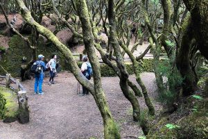 Von hier aus beginnt der Aufstieg zurück zum Gipfel, vorbei an der Cueva del Mocán. Kurz vor dem Cruz de Los Reyes findet man überraschend dichte Wälder mit riesigen Lorbeer-, Fayas- und Heidekrautbäumen, die in der Vergangenheit zur Herstellung von Holzkohle verwendet wurden.