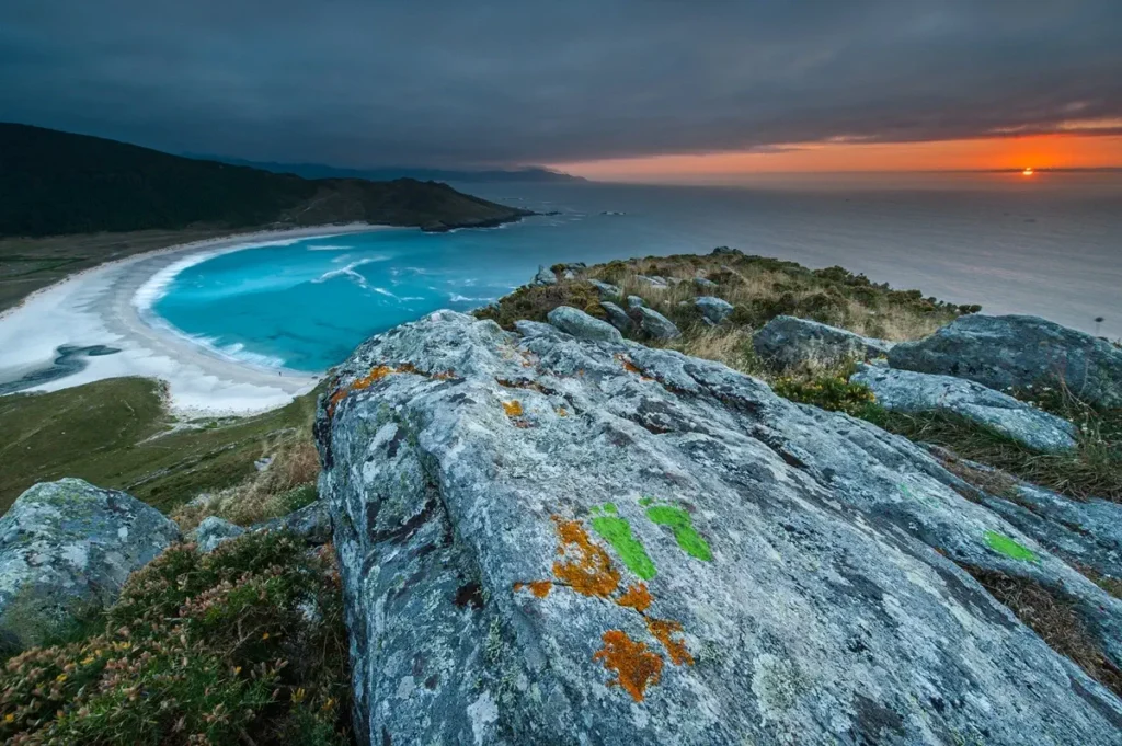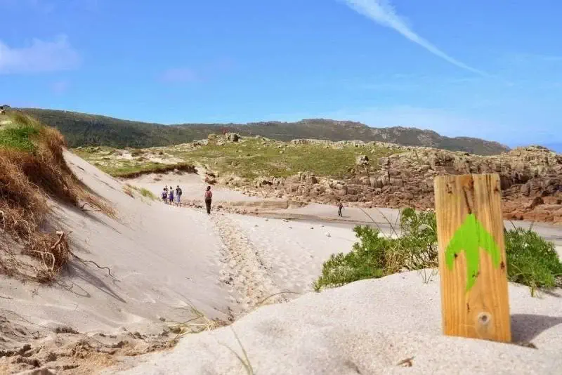 Once you reach the Lobeiras viewpoint, continue through an area of boulder fields until you reach the Santa Mariña Pass. After skirting the Veo lighthouse, you’ll reach the summit of the Monte Branco dune, which offers one of the most spectacular views along the route.