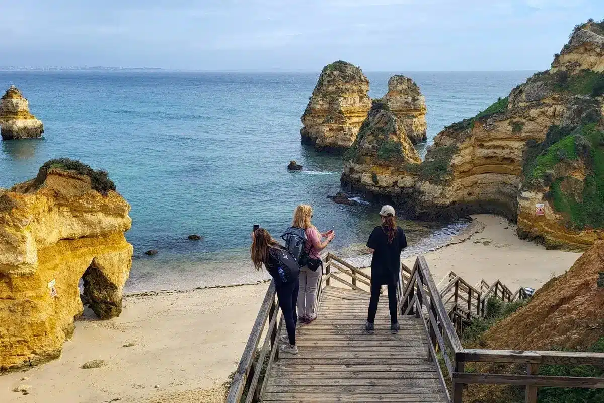Partiendo de la histórica ciudad de Lagos, el sendero se adentra rápidamente en un paisaje costero de extraordinaria belleza. Los primeros kilómetros pasan por la famosa Ponta da Piedade, un conjunto de arcos naturales, grutas marinas y agujas de piedra que emergen del océano Atlántico, considerado uno de los paisajes costeros más fotografiados de Portugal.