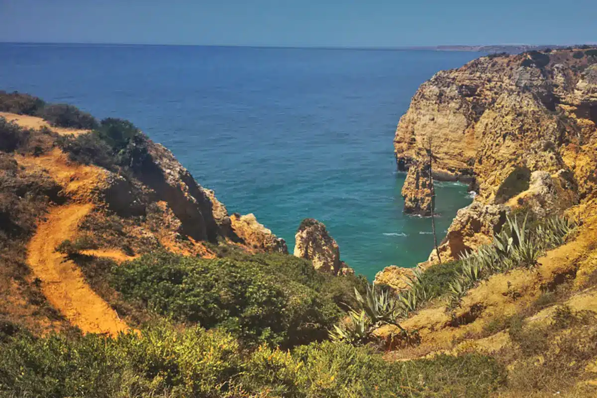 Our route first takes us to Ingrina Bay and Beach and continues to the Ponta de Torre headland. It passes through meadows and repeatedly runs directly along the sea, where we can see the beautiful long sandy beaches of Salema further on.